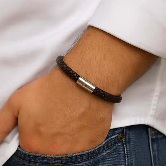 Forge men Stainless steel pu leather coffee
