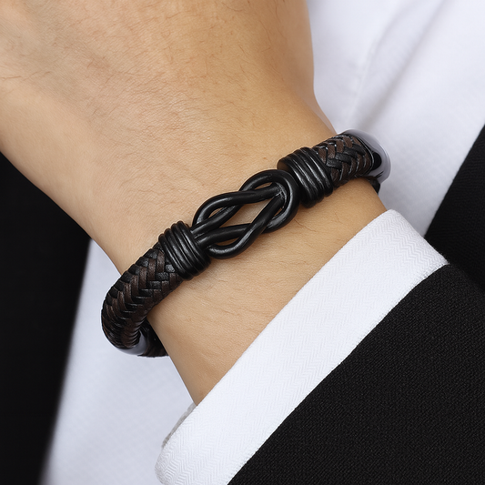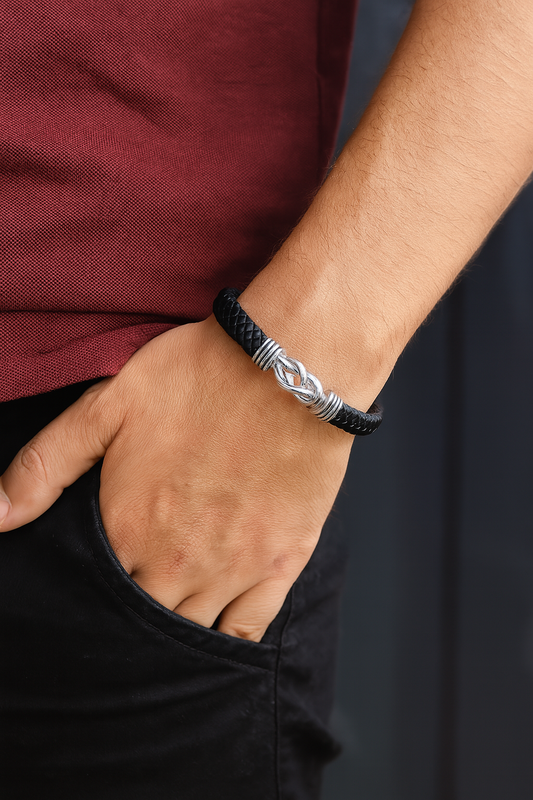 Forge men leather weave bracelet 19 cm black